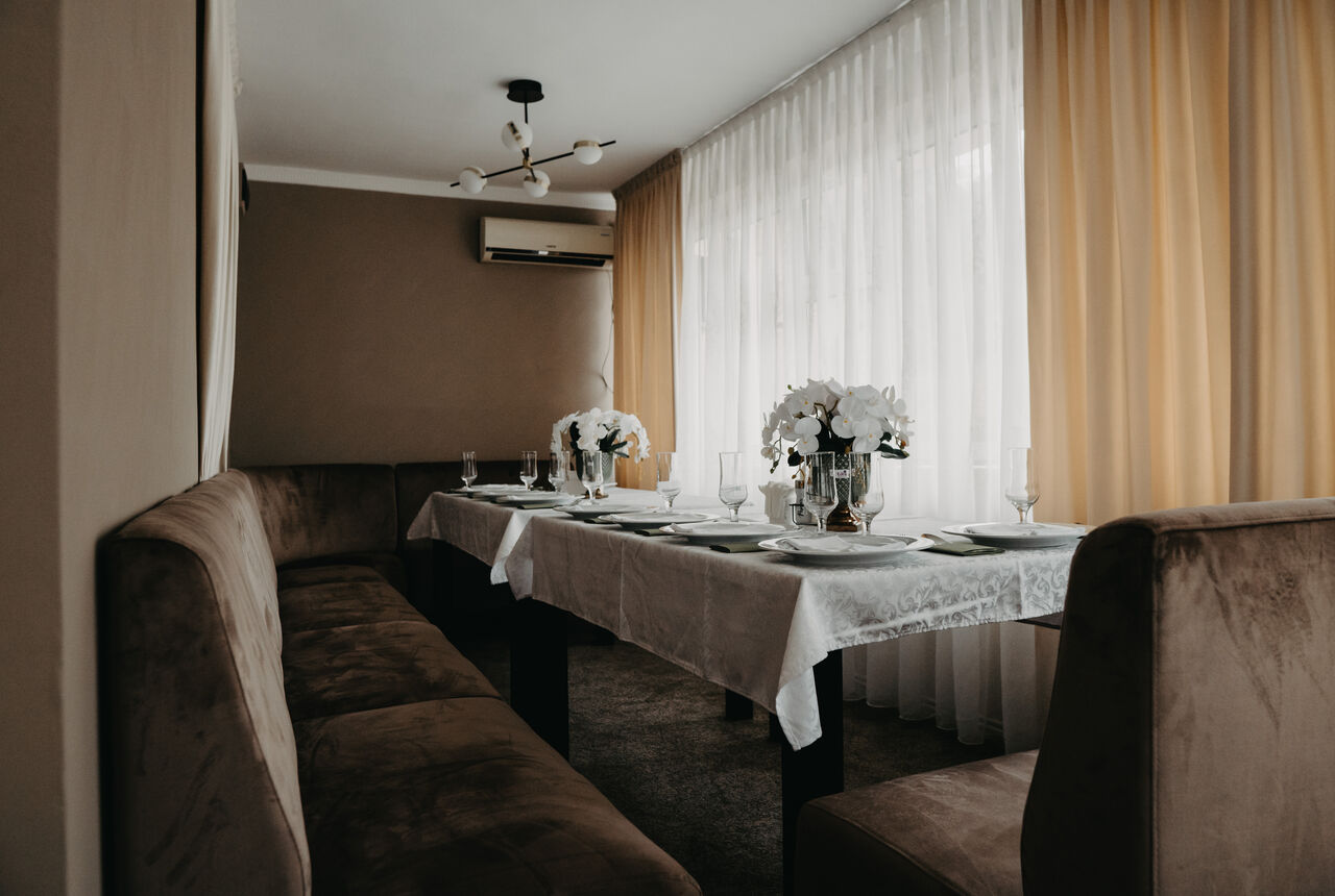 Oferim locuri de parcare gratuite pentru clienții noștri. Desigur, garantăm accesibilitatea hotelului nostru pentru a acomoda toți clienții. Contactați-ne și rezervăm cu plăcere o cameră pentru dvs. Dacă doriți, puteți rezerva și masa la restaurantul nostru excelent. Acceptăm tichete de masă, carduri Maestro, carduri visa, carduri de debit, transfer bancar, plată fără contact și carduri mastercard precum și plăți în numerar. Dacă preferați să mâncați confortabil la dvs. acasă, puteți folosi serviciul nostru de livrare sau puteți ridica personal comanda, ca să luați mâncarea la pachet. Găzduiți un eveniment și aveți nevoie de servicii de catering? Puteți apela cu încredere la noi. Vă stăm la dispoziție pentru informații suplimentare. Găzduim în restaurantul nostru și evenimente private. Vă stăm cu drag la dispoziție pentru informații suplimentare. Luați legătura cu noi pentru a vă găzdui nunta și garantat veți avea parte de o zi memorabilă. Avem deschis zilnic pentru dvs.
